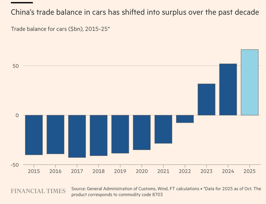 This is not just a US-China fight. “China now sells more than twice as much to the European Union as it buys,” Keith V Bradsher notes. In Europe, it’s set to crush an industrial core of automotive, machinery, and high-tech equipment makers. “The numbers are stark,” notes Reuters columnist Joachim Klement. “Over the last 12 months through October, imports of industrial robots from China have risen 171%, while prices fell 31%. Imports of integrated circuits are up 84%, with prices down 6%. Car imports have more than doubled while prices dropped 15%.”